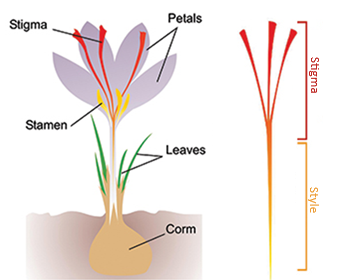 Below is a concise overview of the saffron flower’s main anatomical components: